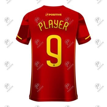 - Red & Yellow Custom Printed V-Neck Half Sleeve Soccer Jersey